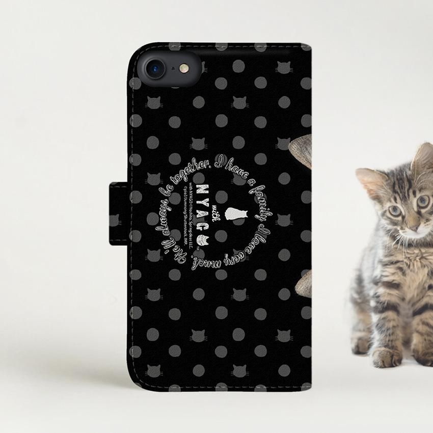 with NYAGO 手帳型 / 厚手 au Galaxy ソラちゃん 肉球をペロペロするにゃー。 猫 ドット 水玉 かわいい猫フェイス手帳 グレー ドット 7120
