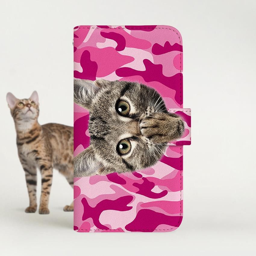 with NYAGO 手帳型 / 厚手 au Galaxy ソラちゃん 肉球をペロペロするにゃー。 迷彩柄 カモ柄 かわいい猫フェイス手帳 ピンク 7122