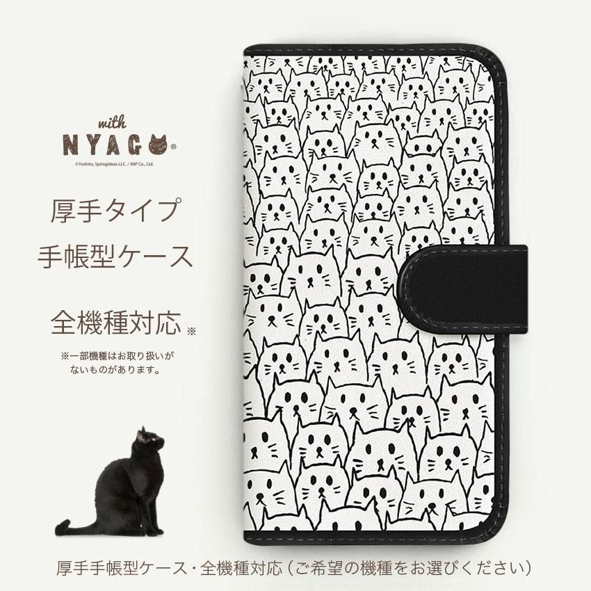 with NYAGO 手帳型 / 厚手 au AQUOS NYAGO キュート パターン NYAGOがいっぱい ホワイト 2076