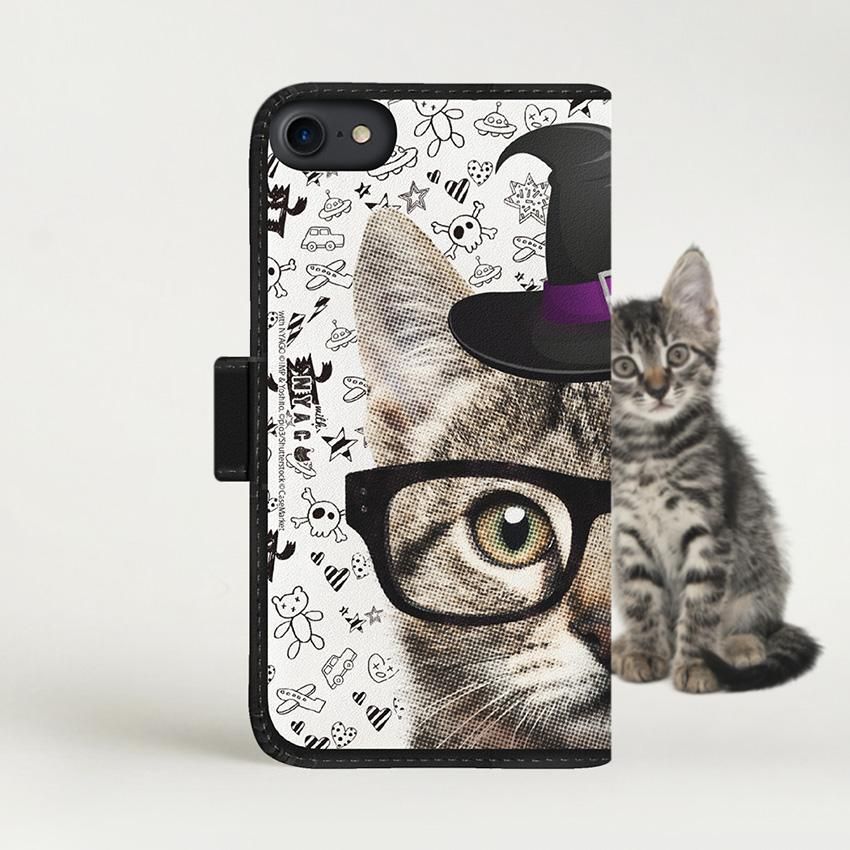 with NYAGO 手帳型 / 厚手 au その他 NYAGO キュート メガネ ソラちゃん フェイス キャット キュート バック イラスト 2248
