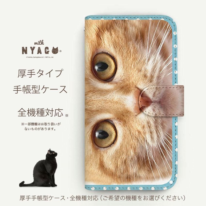 with NYAGO 手帳型 / 厚手 au その他 NYAGO ナチュラル サマー ドット 甘えんぼう 茶トラ ペロペロだにゃ〜。 茶トラ 猫ちゃん 顔アップ ミントブルー 2748