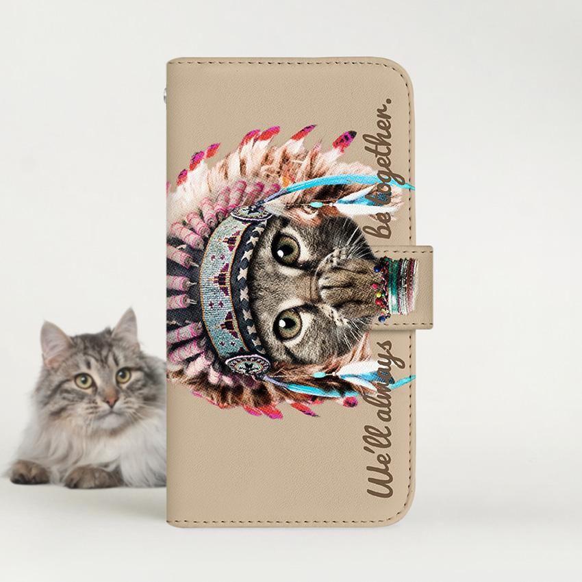 with NYAGO 手帳型 / 厚手 au その他 インディアン ソラちゃん 肉球をペロペロするにゃー。 かわいい猫フェイス手帳 キャメル 7015