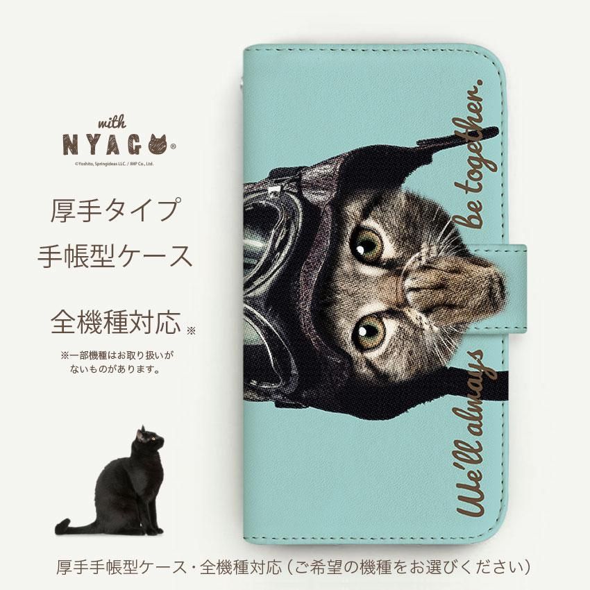 with NYAGO 手帳型 / 厚手 au その他 パイロット ソラちゃん 肉球をペロペロするにゃー。 かわいい猫フェイス手帳 ミントグリーン 7046