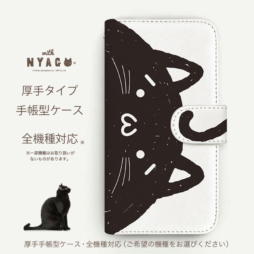 with NYAGO 手帳型 / 厚手 SoftBank NYABON ショボーン (´・ω・`) しっぽ ? モノクロ 2246