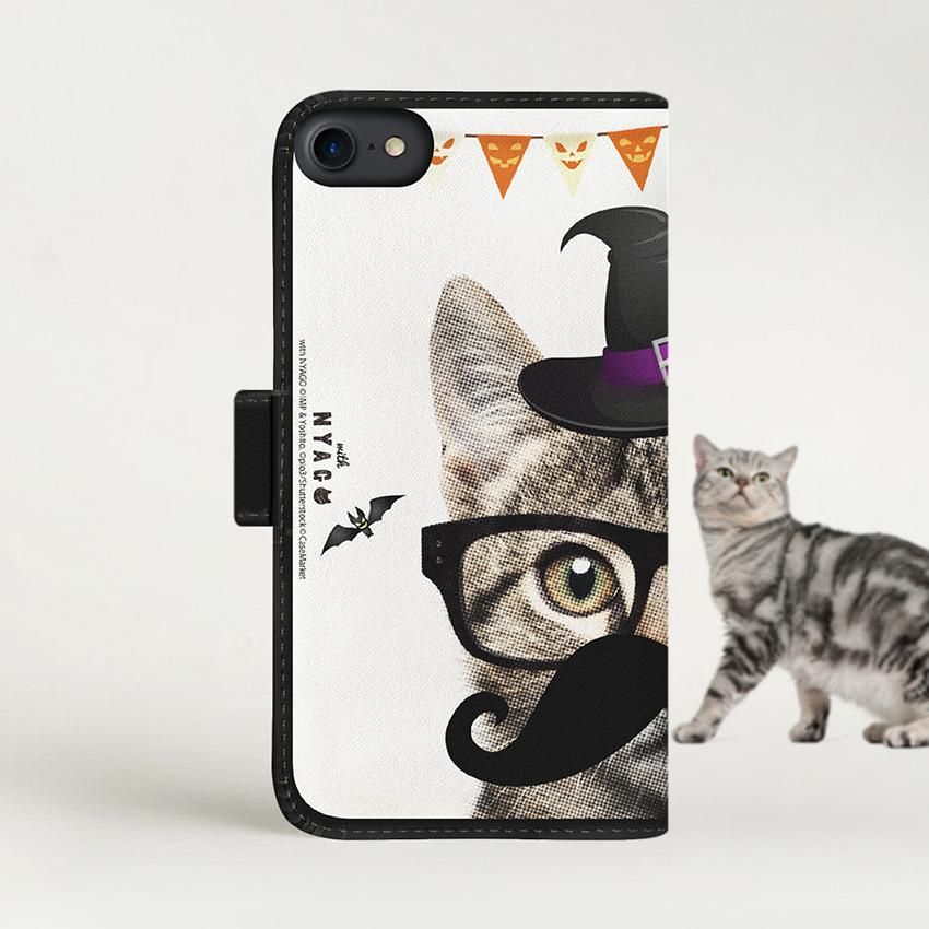with NYAGO 手帳型 / 厚手 SoftBank NYAGO キュート メガネ フェイス キャット - ビッグ ひげ キャット ハロウィン 2329