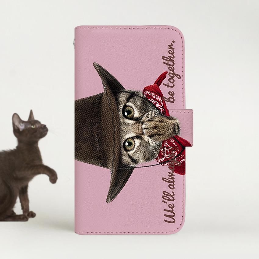 with NYAGO 手帳型 / 厚手 SoftBank カウボーイ ソラちゃん 肉球をペロペロするにゃー。 かわいい猫フェイス手帳 スウィート ピンク 7037