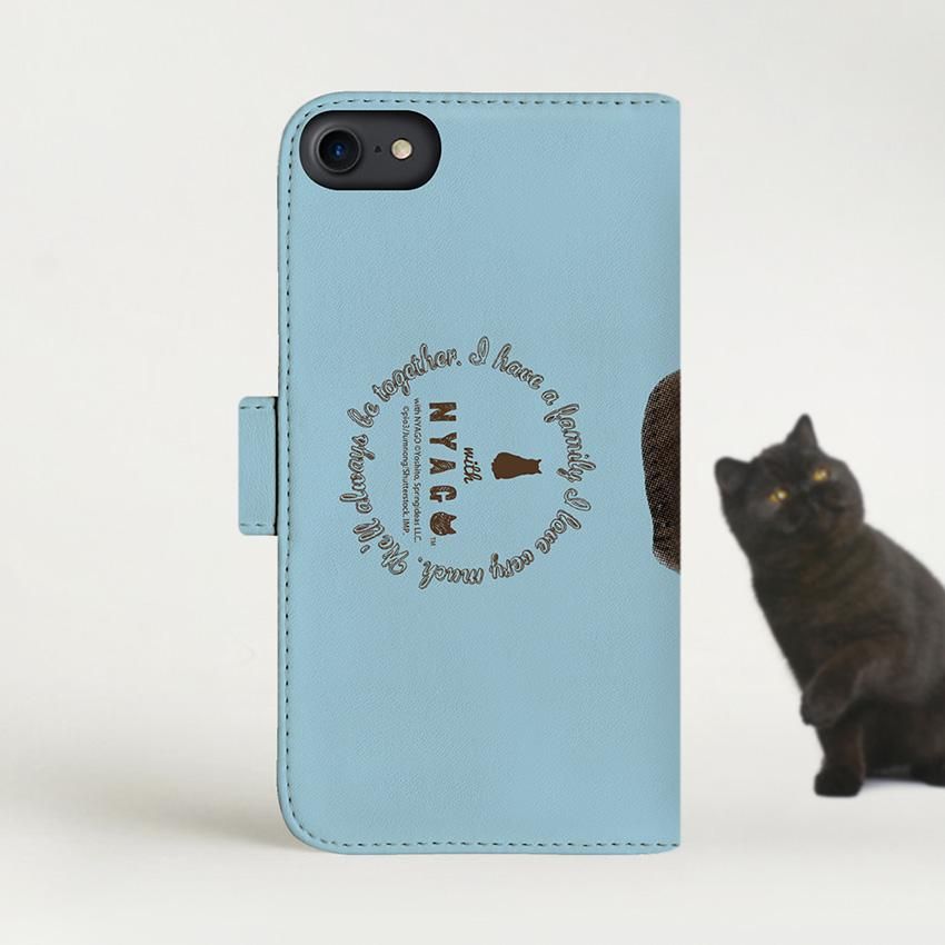 with NYAGO 手帳型 / 厚手 SoftBank カウボーイ ソラちゃん 肉球をペロペロするにゃー。 かわいい猫フェイス手帳 ホライズン ブルー 7040