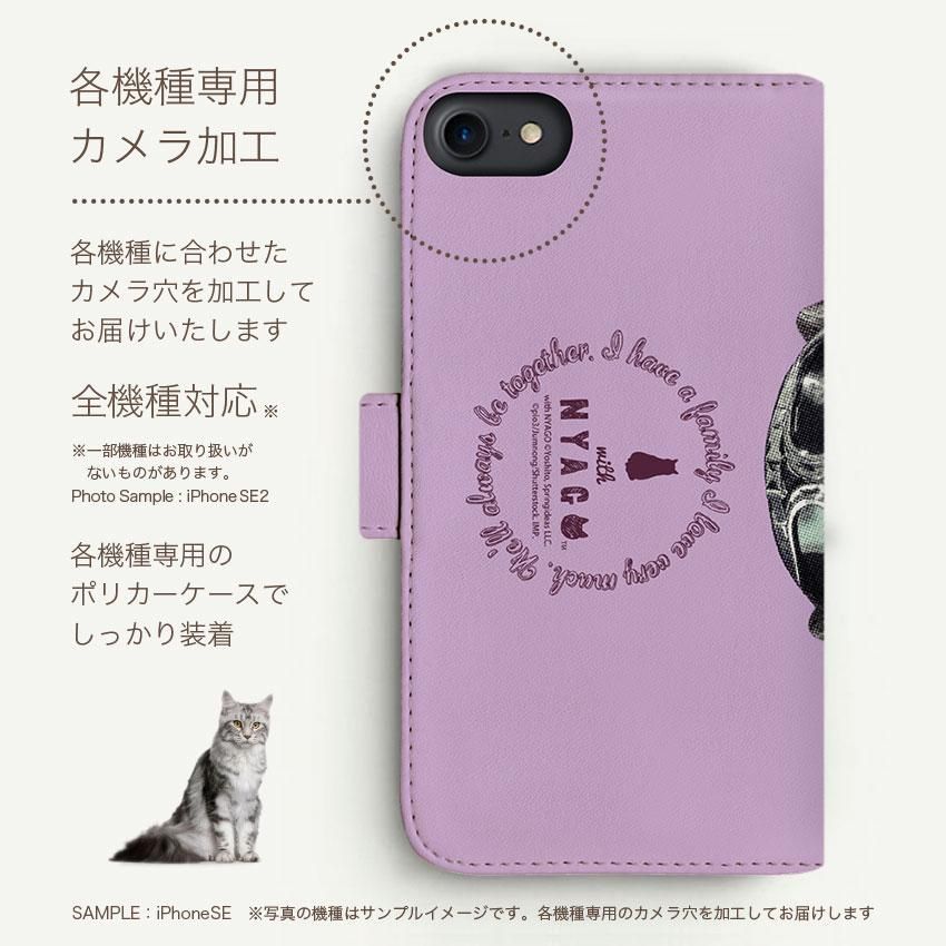 with NYAGO 手帳型 / 厚手 SoftBank パイロット ソラちゃん 肉球をペロペロするにゃー。 かわいい猫フェイス手帳 ライト パープル 7045