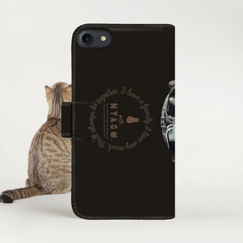 with NYAGO 手帳型 / 厚手 SoftBank パイロット ソラちゃん 肉球をペロペロするにゃー。 かわいい猫フェイス手帳 バックブラック 7062