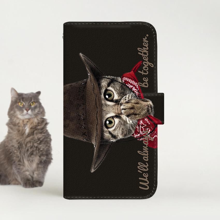 with NYAGO 手帳型 / 厚手 SoftBank カウボーイ ソラちゃん 肉球をペロペロするにゃー。 かわいい猫フェイス ブラック 7075