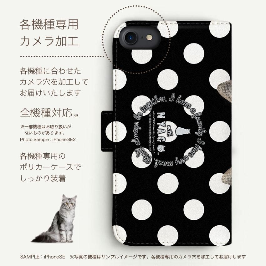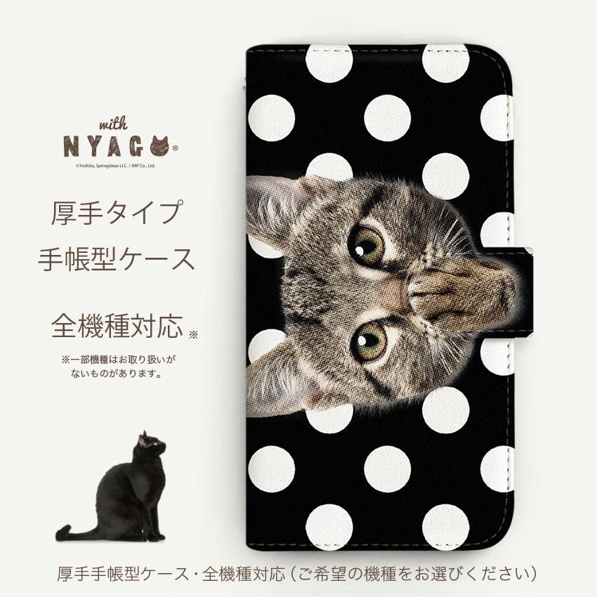 with NYAGO 手帳型 / 厚手 SoftBank ソラちゃん 肉球をペロペロするにゃー。 ドット 水玉 かわいい猫フェイス手帳 ホワイト ドット 7117