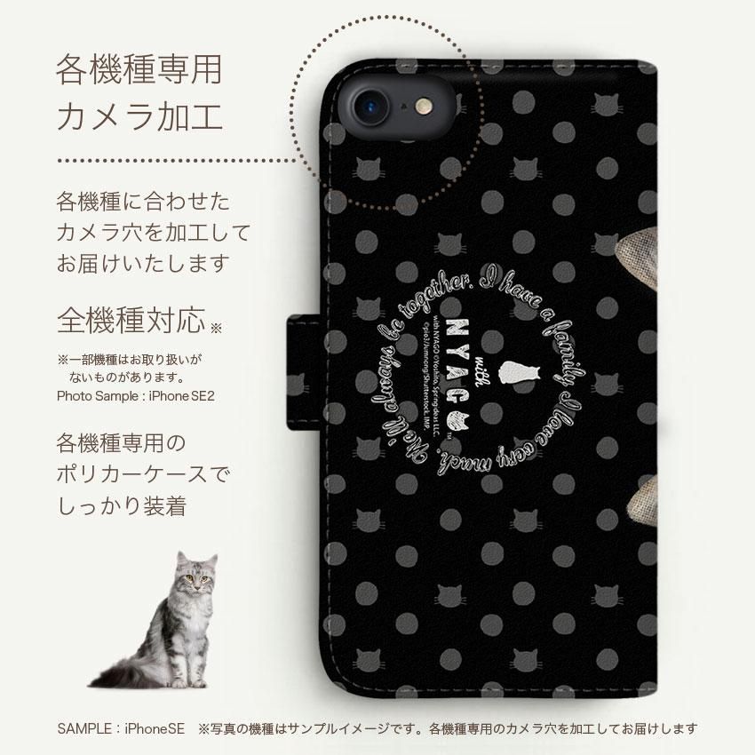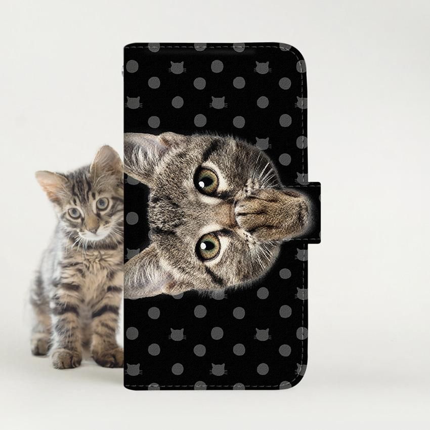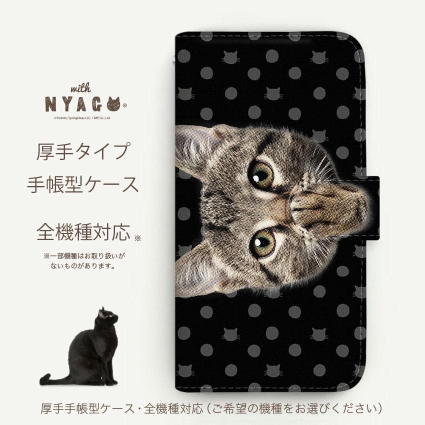 with NYAGO 手帳型 / 厚手 SoftBank ソラちゃん 肉球をペロペロするにゃー。 猫 ドット 水玉 かわいい猫フェイス手帳 グレー ドット 7120