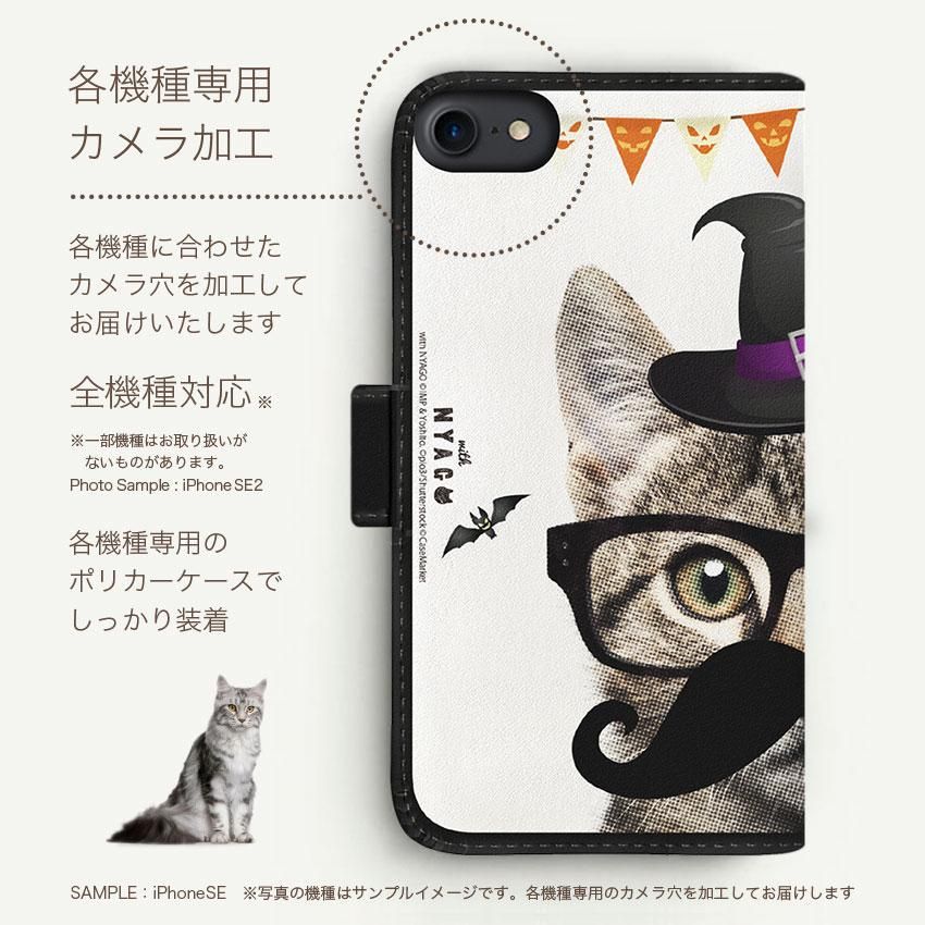 with NYAGO 手帳型 / 厚手 Y!mobile NYAGO キュート メガネ フェイス キャット - ビッグ ひげ キャット ハロウィン 2329