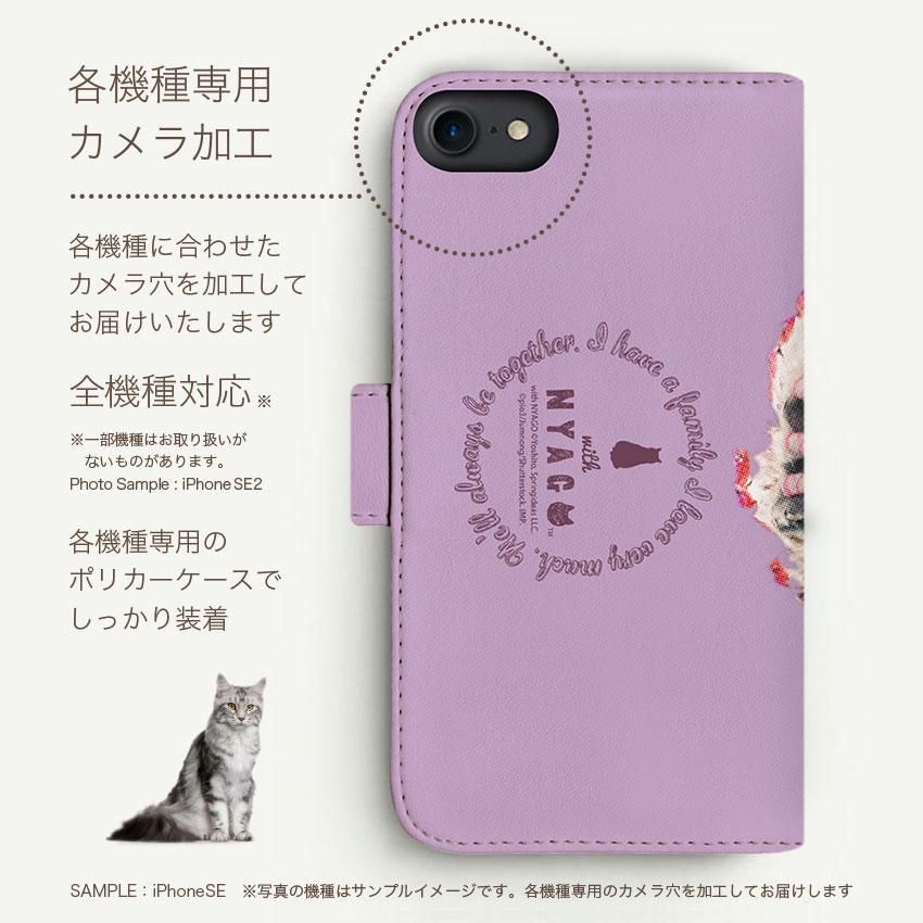 with NYAGO 手帳型 / 厚手 Y!mobile インディアン ソラちゃん 肉球をペロペロするにゃー。 かわいい猫フェイス手帳 ライト パープル 7017