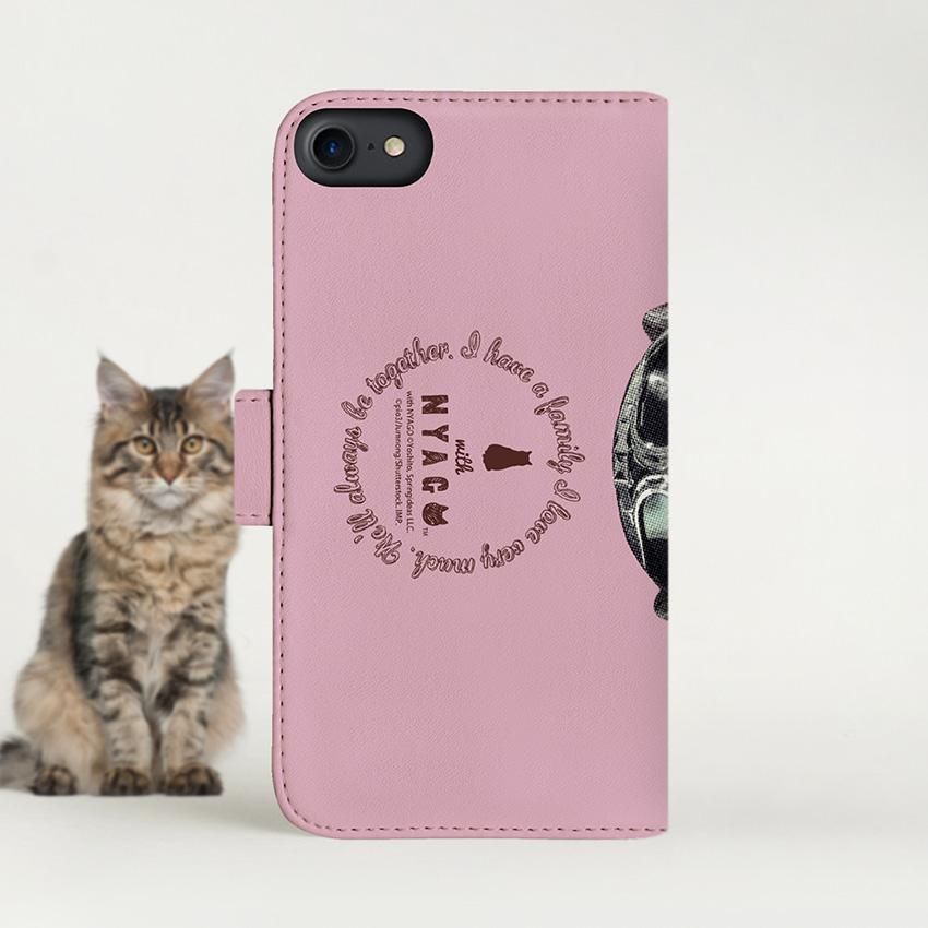 with NYAGO 手帳型 / 厚手 Y!mobile パイロット ソラちゃん 肉球をペロペロするにゃー。 かわいい猫フェイス手帳 スウィート ピンク 7044