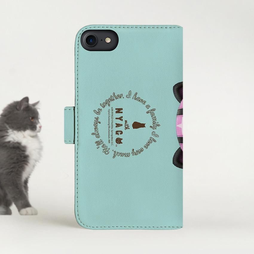 with NYAGO 手帳型 / 厚手 Y!mobile キュート ライダー ソラちゃん 肉球をペロペロするにゃー。 かわいい猫フェイス手帳 ミントグリーン 7053
