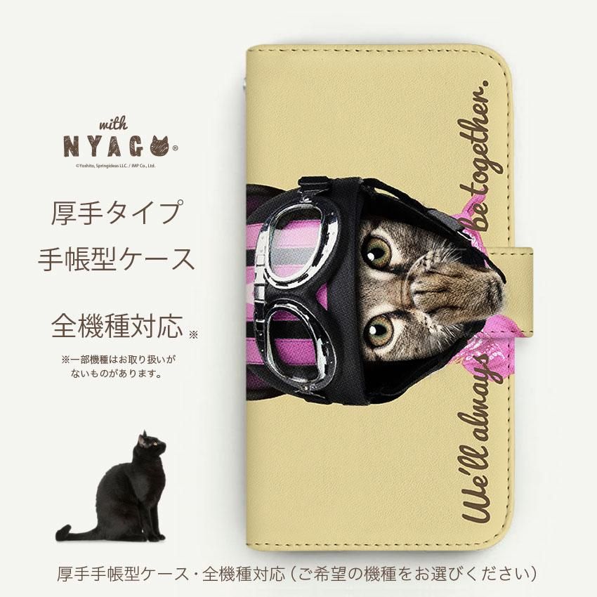 with NYAGO 手帳型 / 厚手 Y!mobile キュート ライダー ソラちゃん 肉球をペロペロするにゃー。 かわいい猫フェイス手帳 クリーム イエロー 7055
