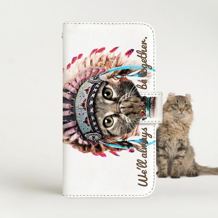with NYAGO 手帳型 / 厚手 Y!mobile インディアン ソラちゃん 肉球をペロペロするにゃー。 かわいい猫フェイス ホワイト 7065