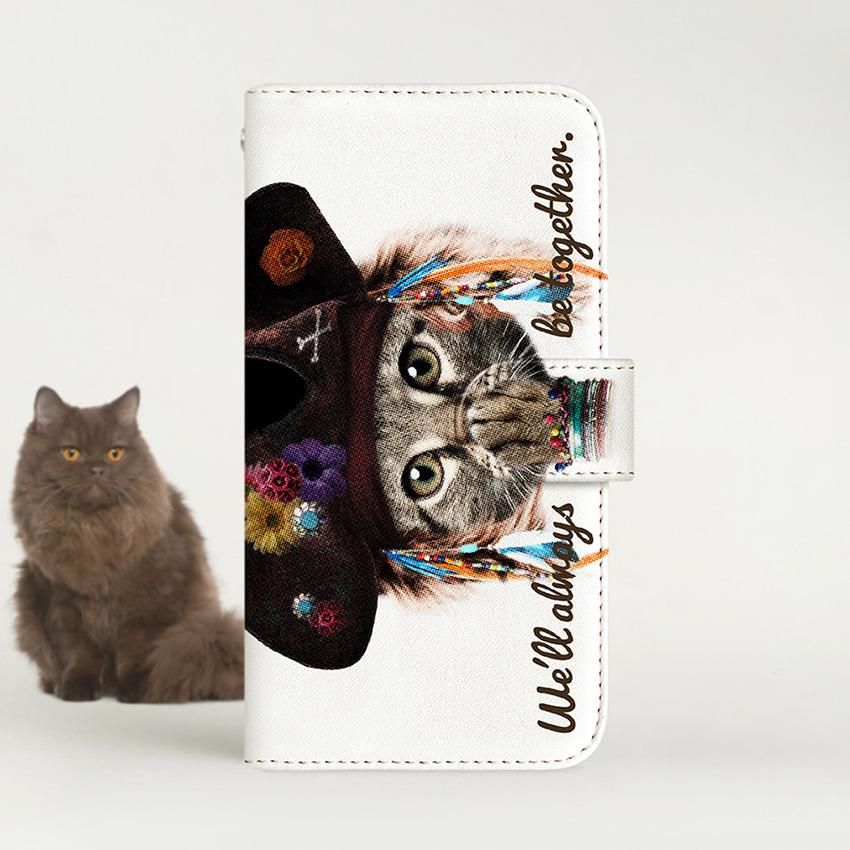with NYAGO 手帳型 / 厚手 Y!mobile パイレーツ ソラちゃん 肉球をペロペロするにゃー。 かわいい猫フェイス ホワイト 7067