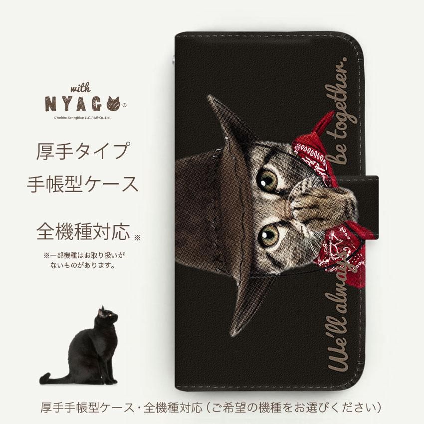 with NYAGO 手帳型 / 厚手 Y!mobile カウボーイ ソラちゃん 肉球をペロペロするにゃー。 かわいい猫フェイス ブラック 7075