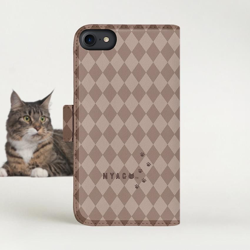 with NYAGO 手帳型 / 厚手 SIMフリー NYAGO フレンチ フラワー キャット シルエット ダイヤ柄 & ごろにゃん? チョコレート 2461