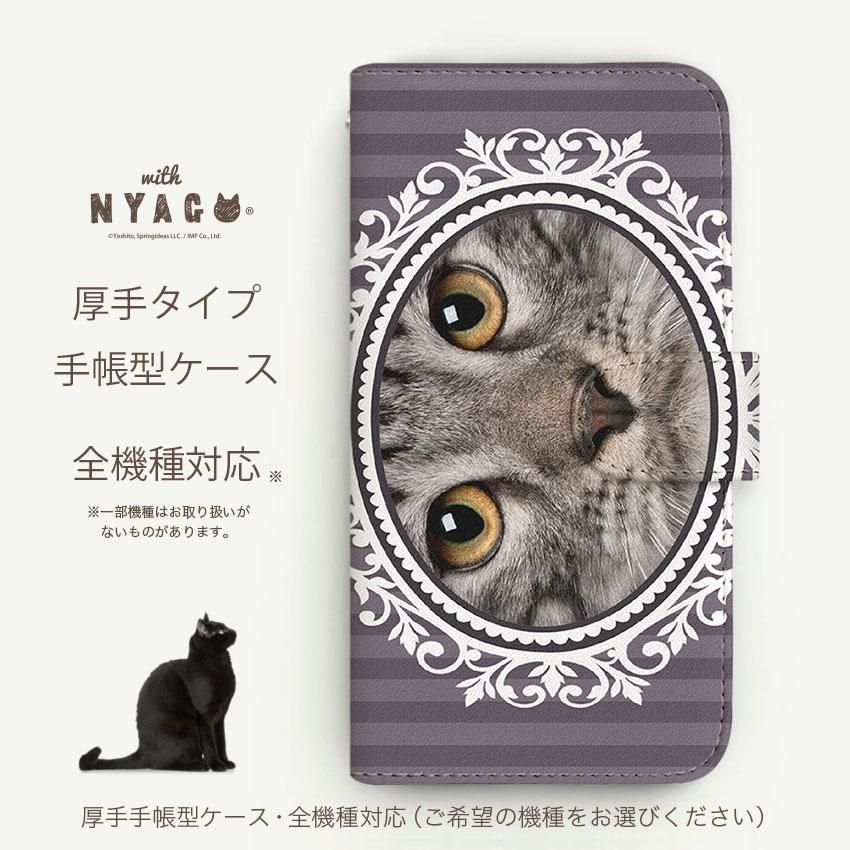with NYAGO 手帳型 / 厚手 SIMフリー NYAGO ボタニカルリース ペロペロだにゃ〜。 アメリカンショートヘア B 2664