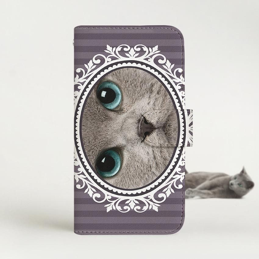 with NYAGO 手帳型 / 厚手 SIMフリー NYAGO ボタニカルリース ペロペロだにゃ〜。 ロシアンブルー 2669