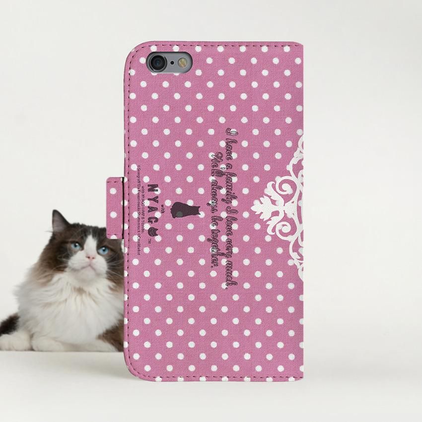with NYAGO 手帳型 / 厚手 SIMフリー NYAGO ボタニカルリース 猫のはなチュー ペロペロだにゃ〜。- サマー ドット - ピンク 2717