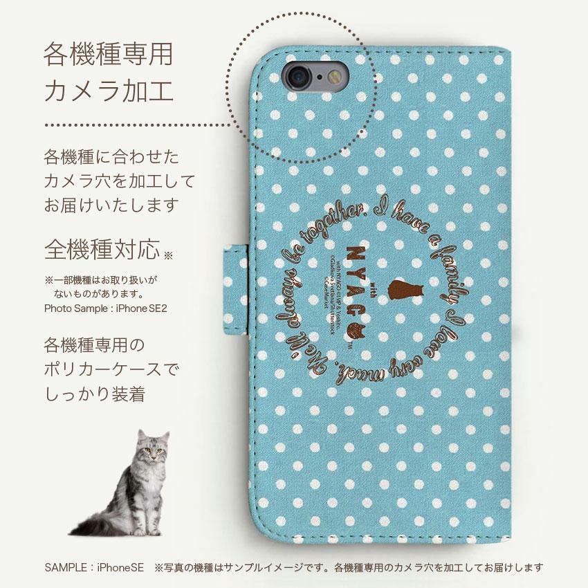 with NYAGO 手帳型 / 厚手 SIMフリー NYAGO ナチュラル サマー ドット 甘えんぼう 茶トラ ペロペロだにゃ〜。 茶トラ 猫ちゃん 顔アップ ミントブルー 2748