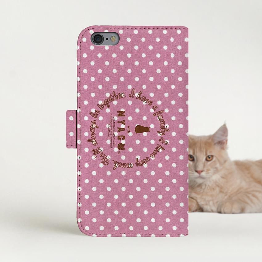 with NYAGO 手帳型 / 厚手 SIMフリー NYAGO ナチュラル サマー ドット 甘えんぼう 茶トラ ペロペロだにゃ〜。 茶トラ 猫ちゃん 顔アップ ピンク 2749