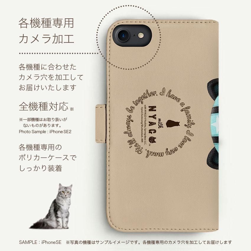 with NYAGO 手帳型 / 厚手 SIMフリー ライダー ソラちゃん 肉球をペロペロするにゃー。 かわいい猫フェイス手帳 キャメル 7022