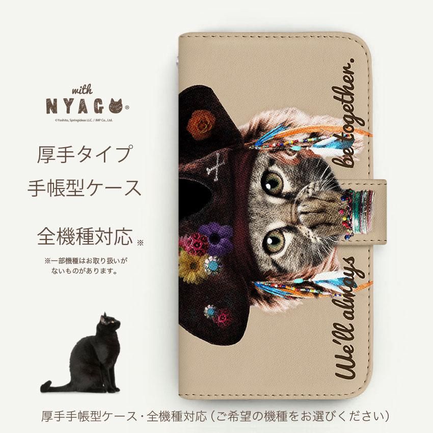 with NYAGO 手帳型 / 厚手 SIMフリー パイレーツ ソラちゃん 肉球をペロペロするにゃー。 かわいい猫フェイス手帳 キャメル 7029