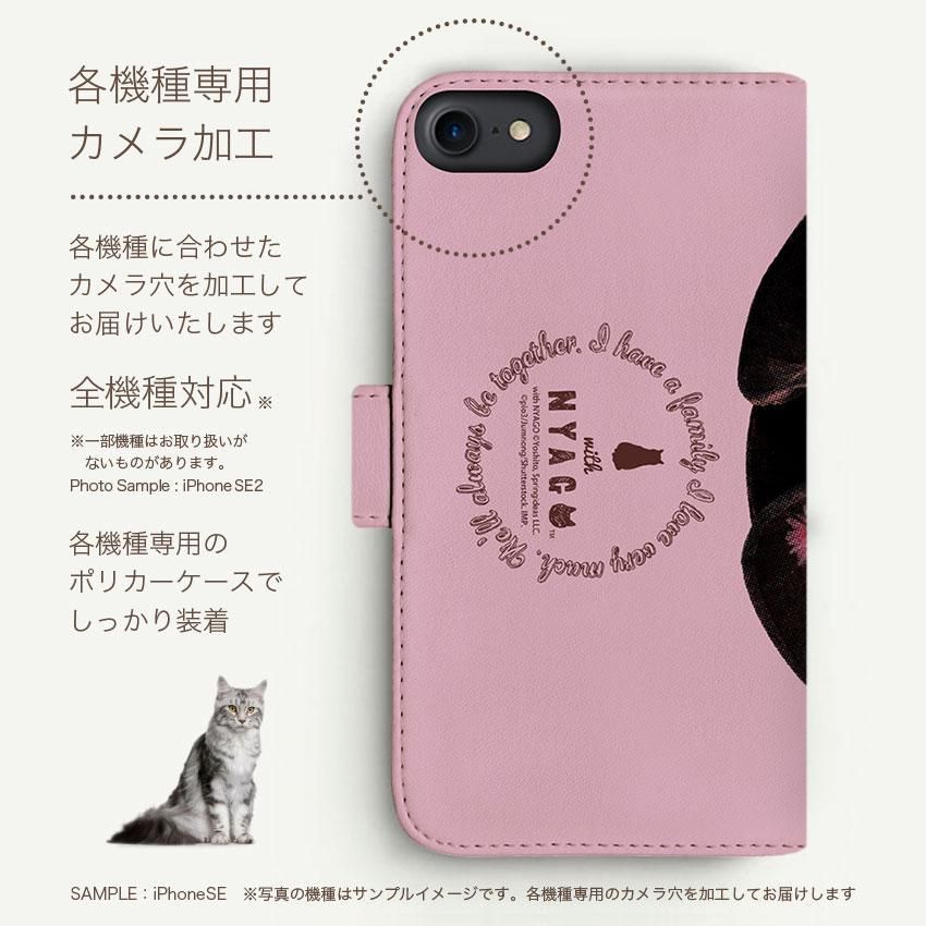 with NYAGO 手帳型 / 厚手 SIMフリー パイレーツ ソラちゃん 肉球をペロペロするにゃー。 かわいい猫フェイス手帳 スウィート ピンク 7030
