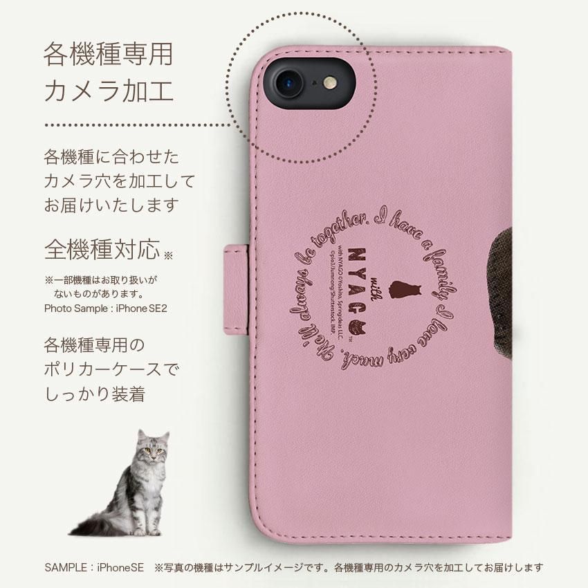 with NYAGO 手帳型 / 厚手 SIMフリー カウボーイ ソラちゃん 肉球をペロペロするにゃー。 かわいい猫フェイス手帳 スウィート ピンク 7037