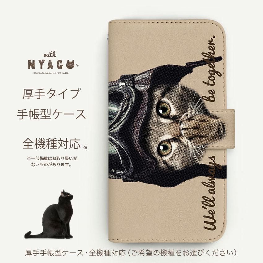 with NYAGO 手帳型 / 厚手 SIMフリー パイロット ソラちゃん 肉球をペロペロするにゃー。 かわいい猫フェイス手帳 キャメル 7043