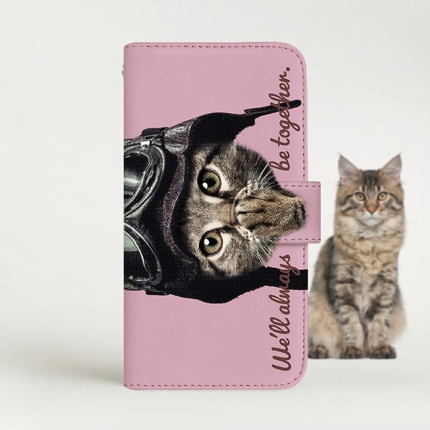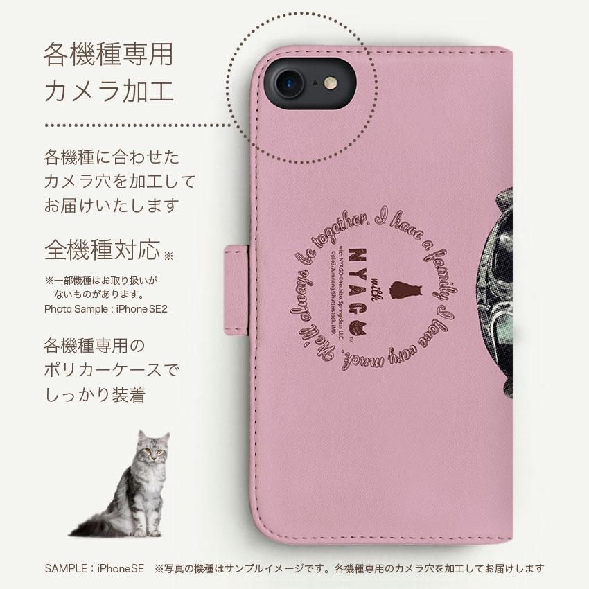 with NYAGO 手帳型 / 厚手 SIMフリー パイロット ソラちゃん 肉球をペロペロするにゃー。 かわいい猫フェイス手帳 スウィート ピンク 7044
