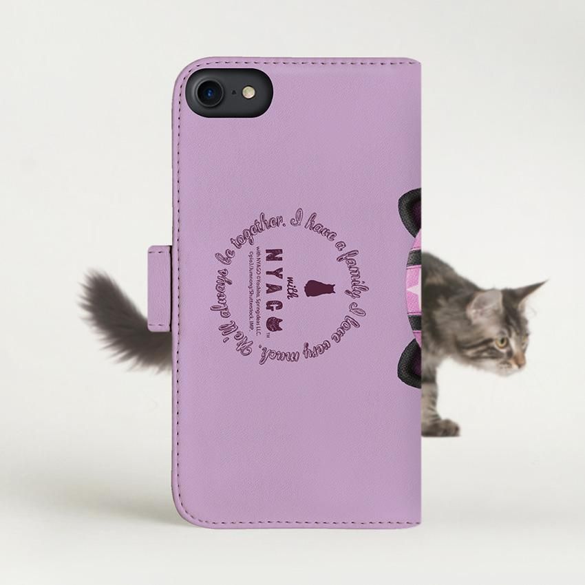 with NYAGO 手帳型 / 厚手 SIMフリー キュート ライダー ソラちゃん 肉球をペロペロするにゃー。 かわいい猫フェイス手帳 ライト パープル 7052