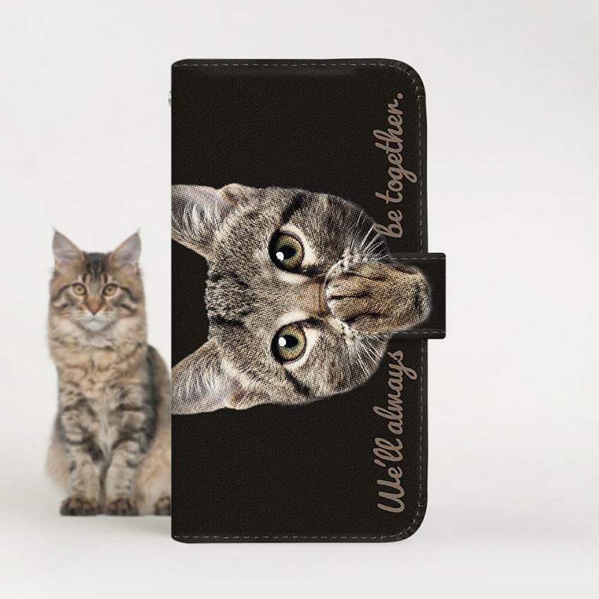 with NYAGO 手帳型 / 厚手 SIMフリー ソラちゃん 肉球をペロペロするにゃー。 かわいい猫フェイス手帳 バックブラック 7057