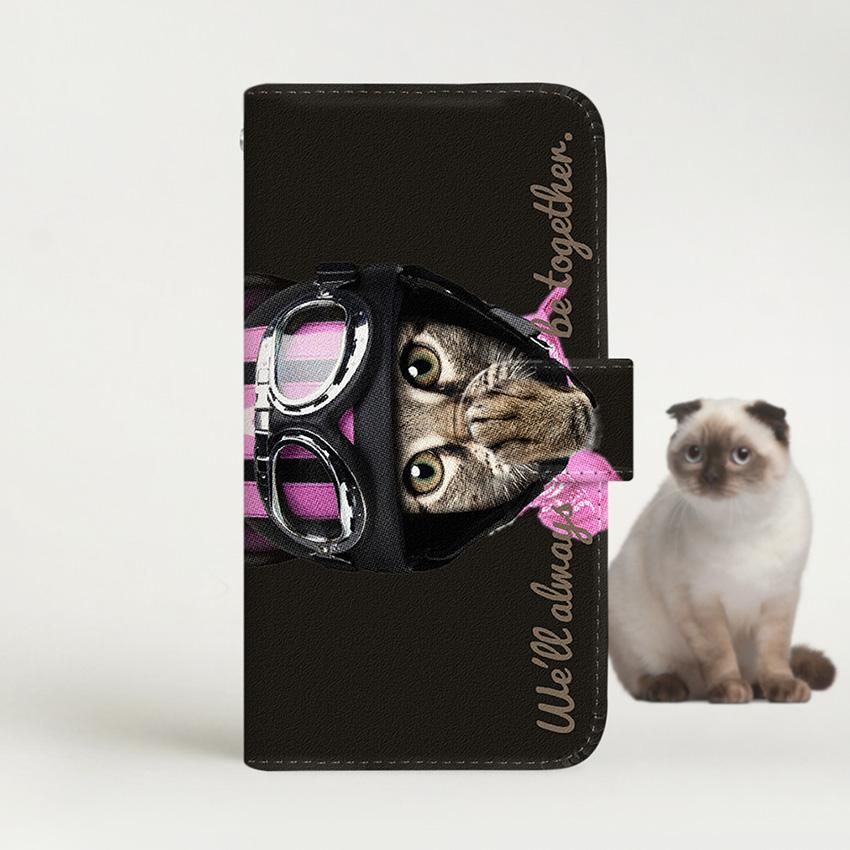 with NYAGO 手帳型 / 厚手 SIMフリー キュート ライダー ソラちゃん 肉球をペロペロするにゃー。 かわいい猫フェイス手帳 バックブラック 7063