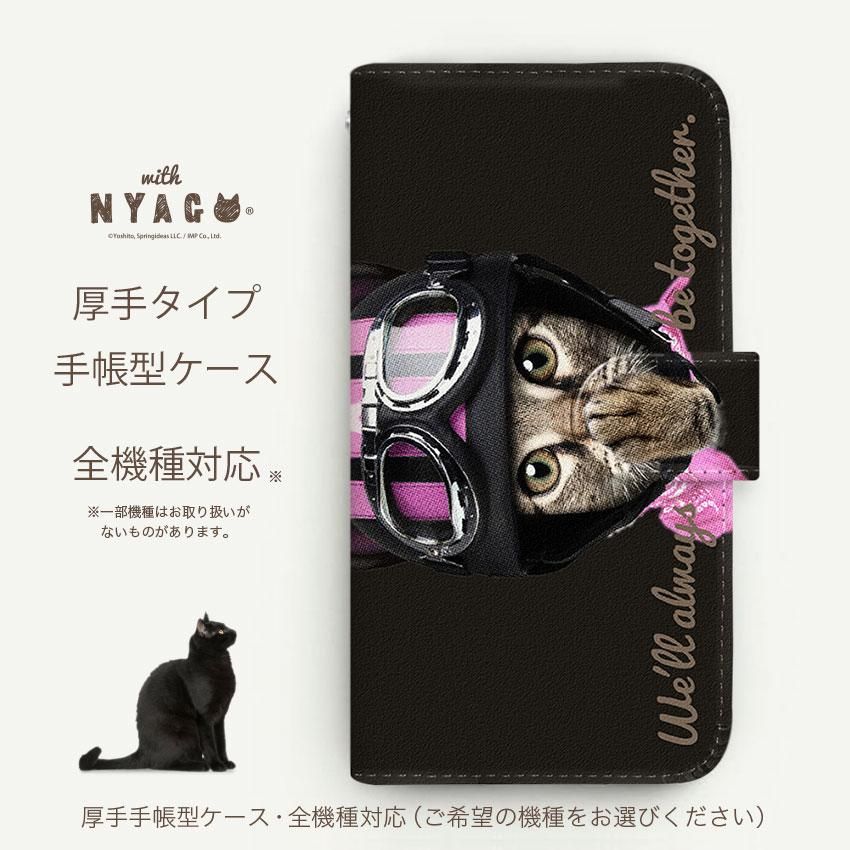 with NYAGO 手帳型 / 厚手 SIMフリー キュート ライダー ソラちゃん 肉球をペロペロするにゃー。 かわいい猫フェイス ブラック 7077
