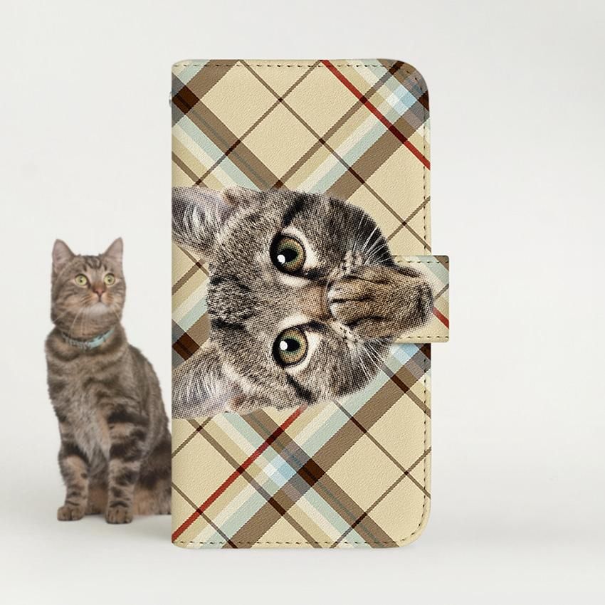 with NYAGO 手帳型 / 厚手 SIMフリー ソラちゃん 肉球をペロペロするにゃー。 イングランド チェック かわいい猫フェイス手帳 7112