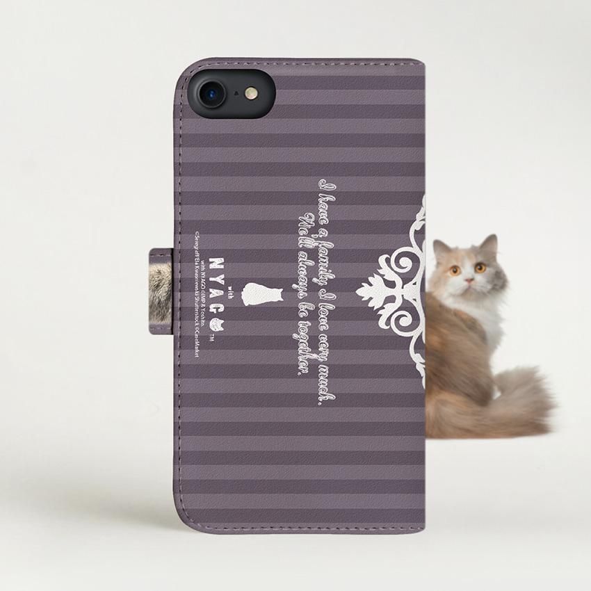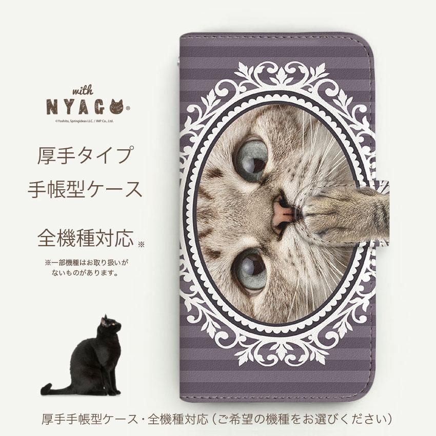 with NYAGO 手帳型 / 厚手 楽天モバイル/UQ mobile NYAGO ボタニカルリース 肉球 ペロペロだにゃ〜。 茶トラ 2655