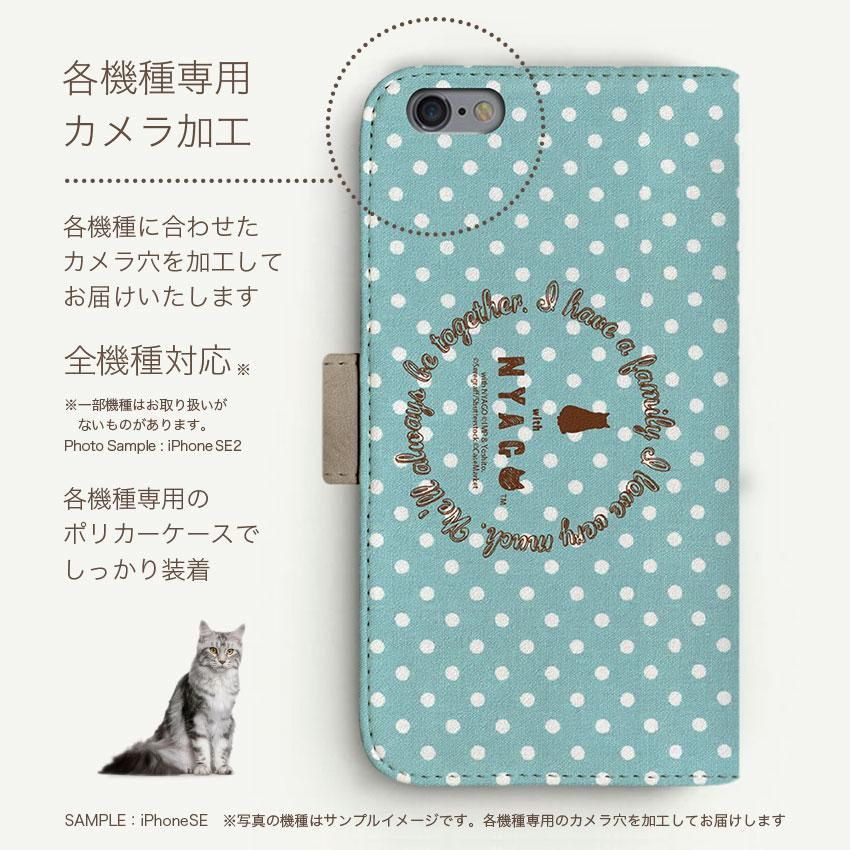 with NYAGO 手帳型 / 厚手 楽天モバイル/UQ mobile NYAGO ナチュラル サマー ドット 猫のはなチュー ペロペロだにゃ〜。- 猫ちゃん顔アップ - ミントブルー 2712