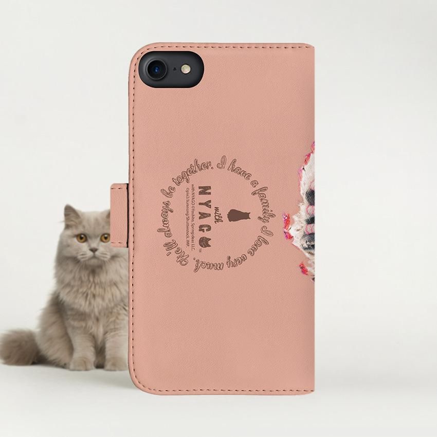 with NYAGO 手帳型 / 厚手 楽天モバイル/UQ mobile インディアン ソラちゃん 肉球をペロペロするにゃー。 かわいい猫フェイス手帳 バーミリオン オレンジ 7021