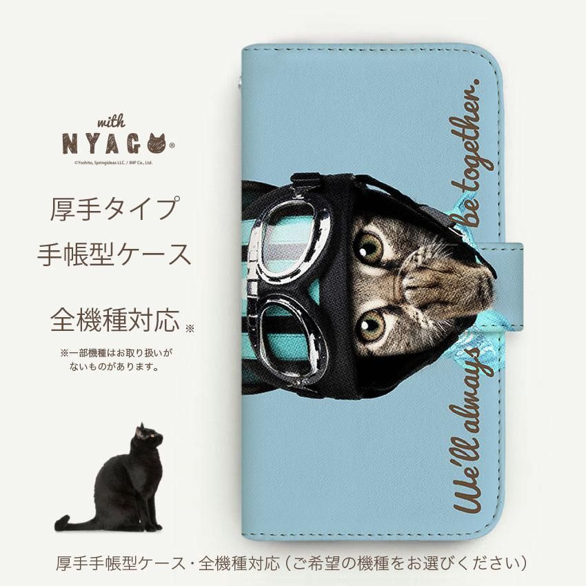 with NYAGO 手帳型 / 厚手 楽天モバイル/UQ mobile ライダー ソラちゃん 肉球をペロペロするにゃー。 かわいい猫フェイス手帳 ホライズン ブルー 7026