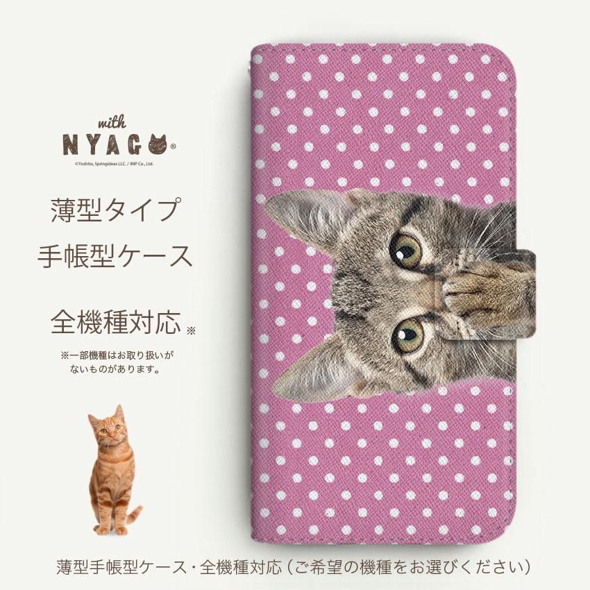 with NYAGO 手帳型 / 薄型 iPhone NYAGO ノート キュート 肉球をペロペロするにゃ〜。 - サマー ドット だにゃ〜。 - ピンク 2719