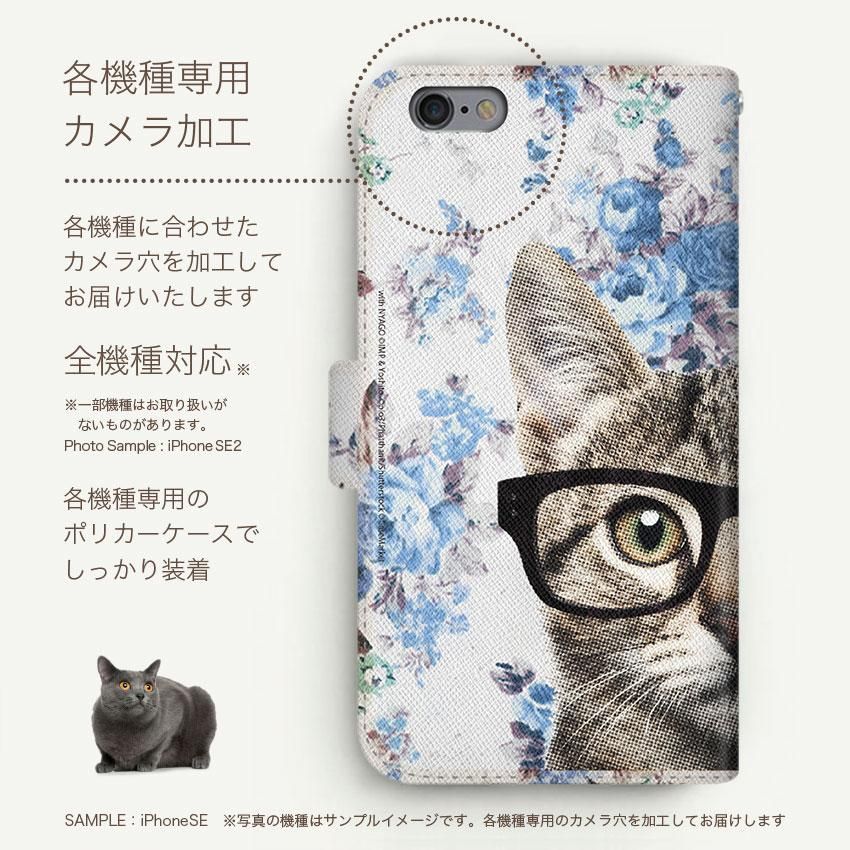 with NYAGO 手帳型 / 薄型 iPhone NYAGO ノート キュート メガネ フェイス キャット - サマー フラワー だにゃ〜。 - ブルー 2726
