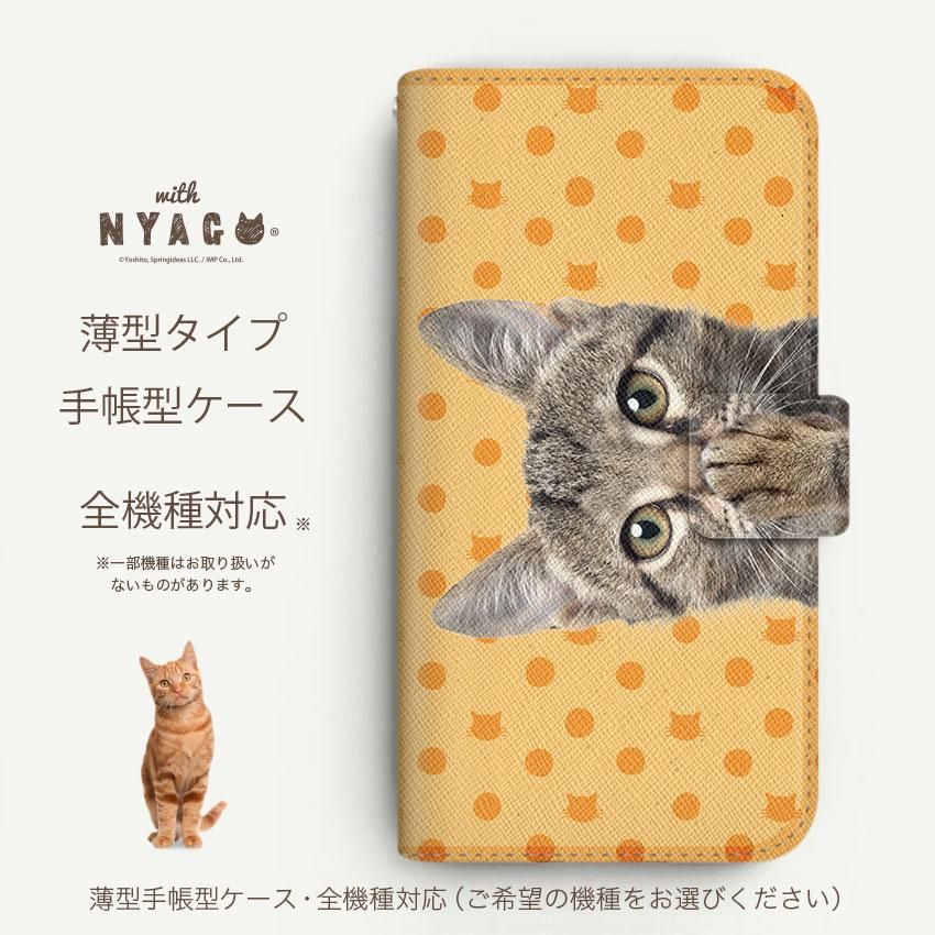 with NYAGO 手帳型 / 薄型 docomo Xperia NYAGO ノート キュート 肉球をペロペロするにゃ〜。 - オレンジ ドット だにゃ〜。 オレンジ 2295