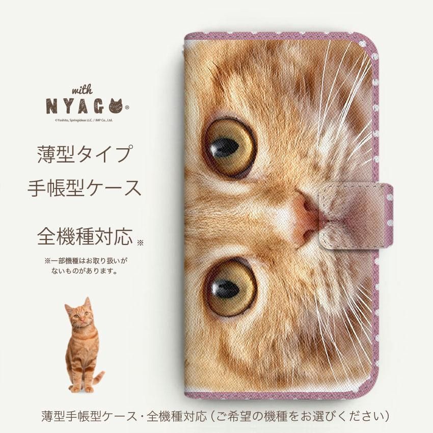 with NYAGO 手帳型 / 薄型 docomo Xperia NYAGO ノート ナチュラル サマー ドット 甘えんぼう ペロペロだにゃ〜。 茶トラ 猫ちゃん 顔アップ ピンク 2749