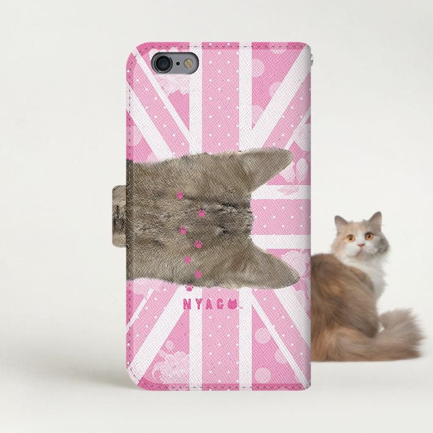 with NYAGO 手帳型 / 薄型 docomo Galaxy NYAGO ノート キュート 肉球をペロペロするにゃ〜。 - にゃんとも ユニオンジャック だにゃ〜。 ピンク 2431
